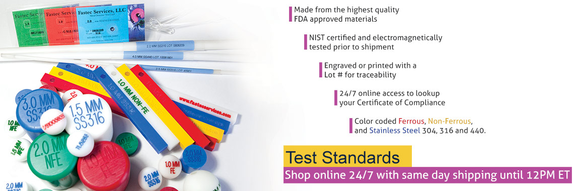Our Metal Detection and X-Ray Test Standards are manufactured using FDA-approved materials and certified to NIST traceable standards. Every piece is electromagnetically tested to deliver consistent, repeatable results—even in demanding production environments.
